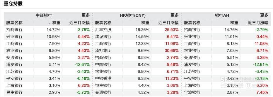 目前,A股与港股市场常见的银行板块指数主要有三只:中证银行指数、中证香港银行指数、中证AH银行指数。